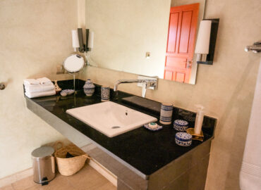 The bathroom is equipped with a shower mixing Italian and Moroccan style and 2 sinks.