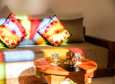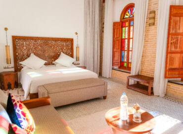 Il design degli interni è volutamente sobrio per sfruttare la tavolozza di colori offerta dalla luce del sole che filtra dalle finestre. Tuttavia, tutte le scelte progettuali sono state fatte nel rispetto della tradizione artigianale marocchina.